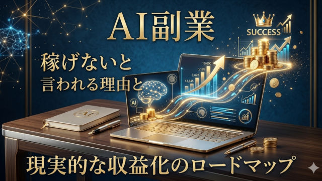 AI副業に興味はあるが、すでに参入が遅く稼げないまま時間を失うのではないかと不安を感じている人は多いでしょう。実は、AI副業で稼げないと感じる原因はAIツール自体ではなく、提供する価値の作り方にあります。生成AIが出力した文章や画像をそのま...