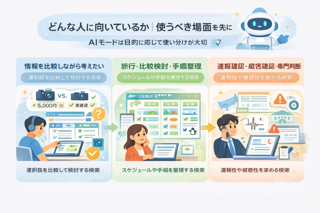 AIモードの特性を理解し、情報収集の強力な補助ツールとして活用してください。